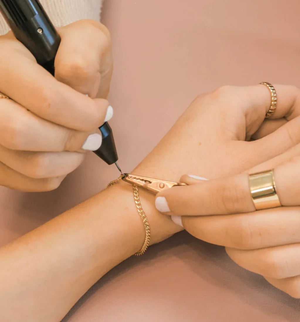 Personalised bracelets that are custom fit and welded around your wrist by a Baiba Balta jewellery workshop jeweller. Personalise yours with charms, initials, ect. It will have no clasp, creating a seamless piece that is truly yours. It's there to sparkle and shine and make you happy! You will have 30 day warranty so book your appointment now!